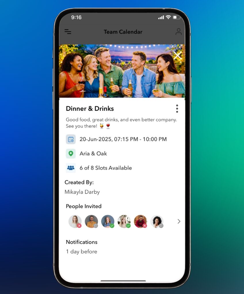 Create events in seconds and track RSVPs in one place. Instantly see who’s in, who’s out, and how many spots are still available so plans stay clear and decisions are easy.